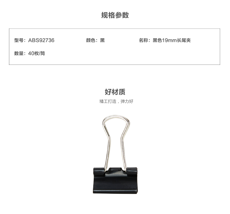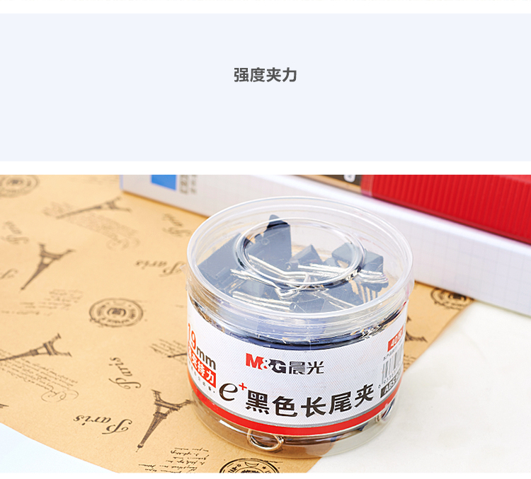 商品名稱:晨光 M&G Eplus筒裝黑色長(zhǎng)尾夾 ABS92736 19mm 40個(gè)/筒